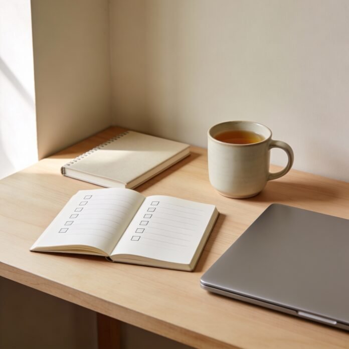 Take a piece of paper, divide it into morning, afternoon, and evening, and sketch your ideal day in simple blocks. Add just one or two habits to each block: a calm start in the morning, one focused work block with no distractions, and a short wind-down routine at night. You now have a rough blueprint that you can slowly move toward, instead of waiting for life to magically reorganize itself.